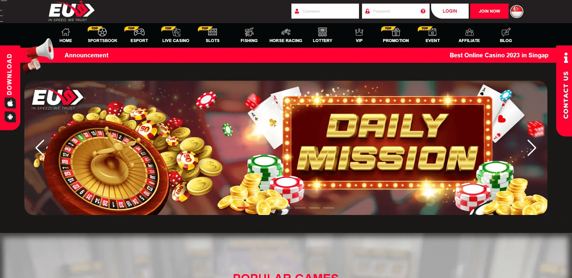 EU9 stands out when it comes to finding the best online casinos in Singapore. EU9 established in 2020 and has a wide range of games, including slots, roulette, blackjack, baccarat, and many others. It stands out even more because of its amazing payout rates. Across all games, the average return to player (RTP) rate is 97%. The table below shows some of the important things that make EU9 one of the best casinos in Singapore
