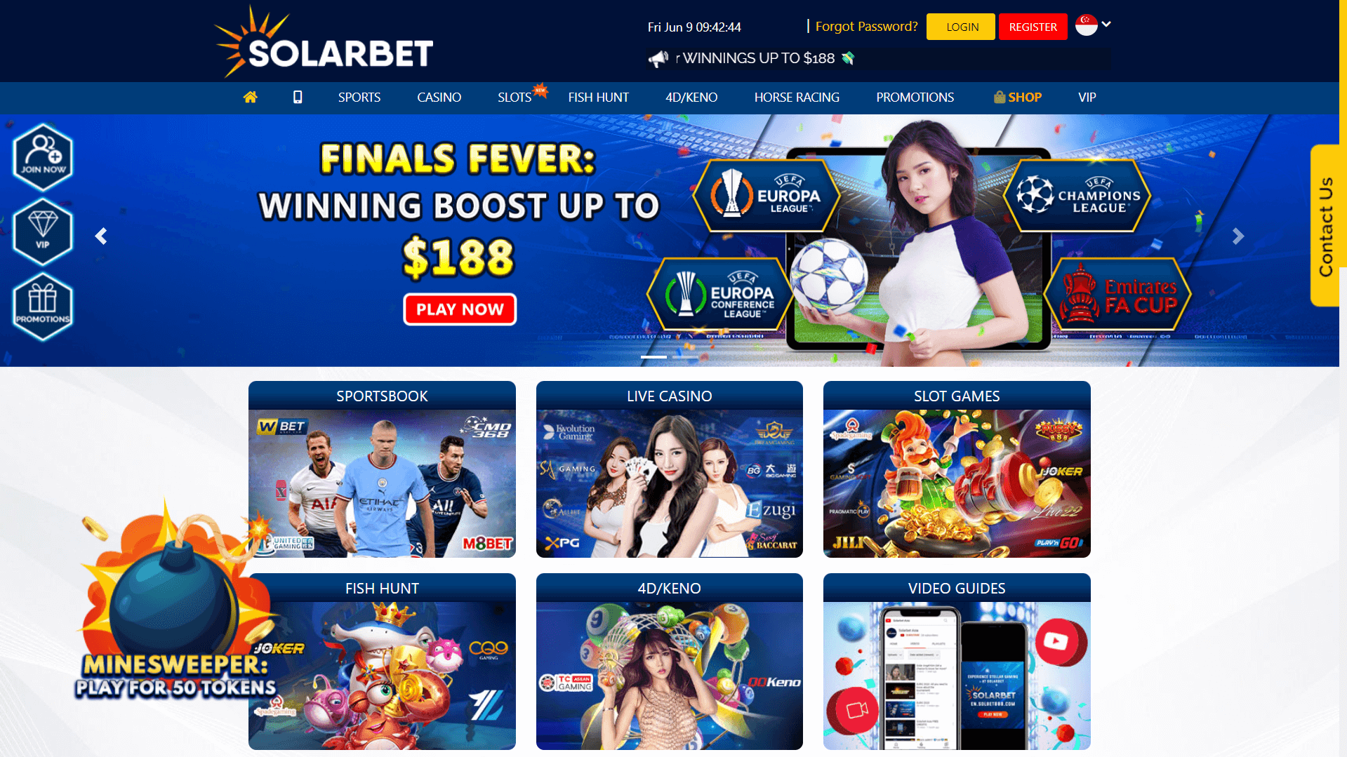 Solarbet is known for providing verified payouts and secured online casino Singapore with its mature betting system. Solarbet also collaborated with various reputable and reliable software providers to ensure maximise the gaming experience of the players. Explore sportsbooks, live casinos, online slots, lotteries, and other speciality games with the best deals, bonuses, awards, and incentives with the casino site.