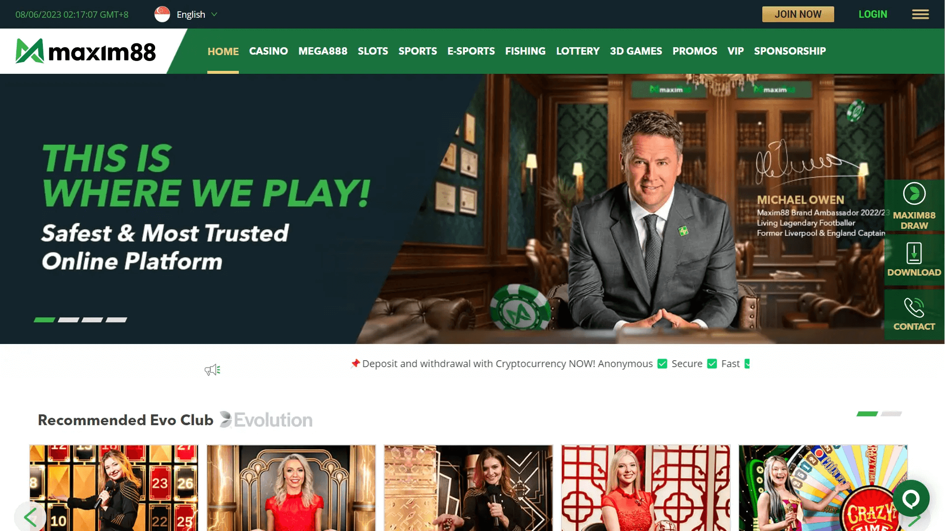 | #6 | Maxim88 | 225% Micheal Owen Welcome Bonus Up to SGD 450 | Play Now |