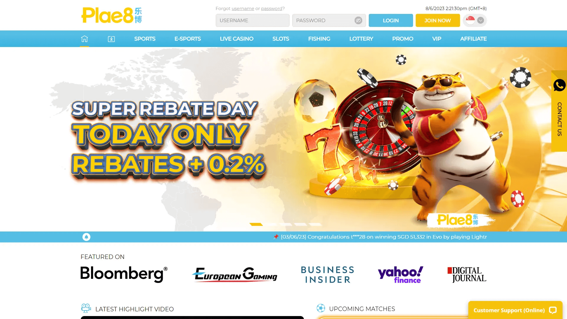 Plae8- 250% Bonuses Up to SGD 600